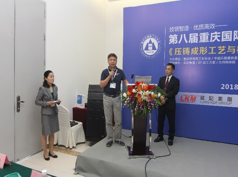 這次大同特殊鋼受邀成為贊助單位,并在5月10日由大同特殊鋼(上海)有限公司瓜田高級經理主講了[壓鑄成型工藝與模具新技術]之[典型壓鑄模具失效案例鑒析及用材技術動向]研討會。重慶模具界近百名人士參加了此次研討會,其間講師與聽眾進行了良好有效的互動溝通,還有中國兵器模具委員會首席技術顧問/高鵬先生作現場點評,場面氣氛熱烈難得一見。會后,大家都感言獲益良多。